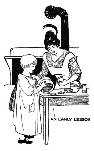 To-day the family is not such a good miniature of the whole society. For example, many of the industrial arts are carried on to-day in large factories rather than in the home, so that the home is no longer the only place where the industrial arts are learned. Nevertheless, the family is still our most important device or institution for passing on to the young the stored-up experiences of the race. It is, indeed, almost the only such institution during the earhest and most plastic years. In the later years of the child’s life, the family shares its torchbearing work with the school, the church, the club, and the playground. But even in these later years children continue to learn by imitating the elders in the family, by being taught all sorts of things by the parents, and by taking part in the duties and joys of the family life.