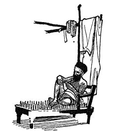 While the farmer and his boys were busy supplying leather clothing, the wife and daughter were manufacturing cloth for making other wearing apparel of the family. They raised flax in their owm little patch, harvested it, separated the cloth-making fibers from the woody part of the stock, and prepared the fibers so that they could be spun into thread. Then they wove the cloth. After the cloth was finished, they bleached it or dyed it. There remained the task of shaping it into garments.