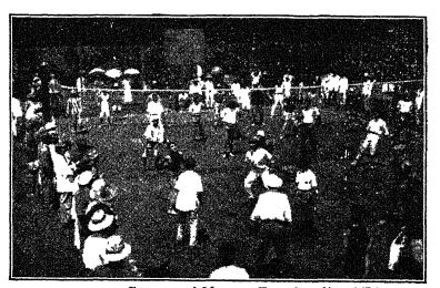 The playground groups. — Recreation and play relieve the strain of modern complex life. They relieve the monotony of modern factory and office work. They help to make healthy bodies and happy minds in young and old alike. These are good reasons for having our parks, theaters, bathing beaches, and roof gardens. But there is still another reason for them and for the playground movement that has swept over the country in the last generation. Organized play is one of our best torchbearers. In organized play we [ p. 325 ] [ p. 326 ] learn to act in cooperation with others; to be governed by the rules of the game; to sacrifice our own pleasure or vanity for the sake of the team’s success. Some one has said that the “sacrifice hit” of our baseball gamesteaches us one of the best lessons we learn. There can be no doubt that cooperation, obedience to rules, and self-sacrifice are emphasized in our organized play. And there can be no doubt that these qualities are needed in hving together well.