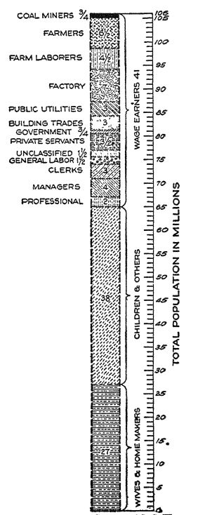 The main kinds of present-day specialization. — We have grown quite accustomed to living in a society of specialists. It seems quite natural to have doctors and lawyers and teachers and street-car conductors, and what not. It seems [ p. 369 ] equally natural that each of these persons should do just one thing, while others build houses for them, prepare meals for them, make clothing for them, run laundries for them, or amuse them.