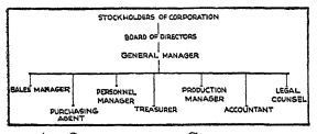 To-day the general manager of a business has many assistants. The production manager supervises the factoi’y end of the business; the sales manager takes care of advertising and selling; the personnel manager deals with the labor force; [ p. 372 ] the treasurer watches financial matters; the chief accountant takes care of the records. Each of these managers may have a whole staff of specialists under him. For example, the personnel manager may supervise a medical department, an employing department, a restaurant department, a safety -engineering department, and a miscellaneousservice department. We have specialization of management as truly as we have specialization of workers and of capital goods.