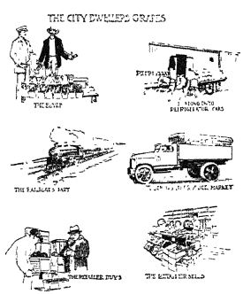 Others who help feed a city. — Now all this is but the beginning of the story of the feeding of a city. There remains the story of flour and the bakeries; the story of the restaurants and hotels and boarding houses and homes; the story of the provision merchants who deal in meats and meat products; the story of the retail grocers and delicatessen men. However, these stories are all fairly well known; they do not need to be told here. The feeding of the city shows that ways have been found to knit together the specialists of the city with the specialists of all the rest of the world. It is done through “the market,” through exchange.