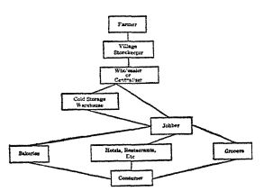 Not all goods come into the market as a result of the work of these buyers. Sometimes groups of producers organize themselves into cooperatives and have an agent to sell their produce. Sometimes producers combine their shipments and send them in carload, or even train-load lots, and have them sold at public auction, usually at railroad freight yards or at steamship piers. Fruits are especially likely to be handled this way. Sometimes producers ship direct to commission men in South Water Street who sell for them and charge a commission. It is clear that there are many possible channels for supplying the food of the city.