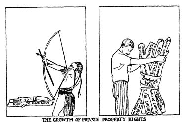 In property matters, also, society steps in with regulations. It does not allow property to be used for making impure foods or alcoholic liquors. It allows property to be used for making certain drugs only under very careful rules.