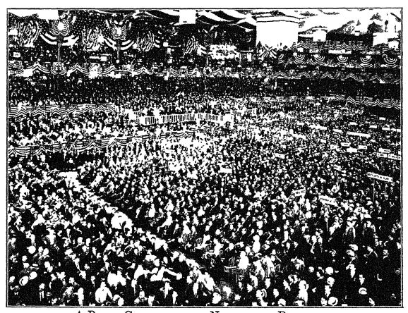 Groups that help to form public opinion.[2] — Political parties. — One way by which we form pubhc opinion is by the use of political parties. Everyone knows of the Republican [ p. 443 ] and Democratic parties. As time has gone on these parties have worked out schemes of organization for holding themselves together; for forming “platforms” or declarations of what they believe in; for nominating men for office; and for persuading people to vote on their side. They issue tens of millions of pamphlets and books, hold public meetings, have parades, send out “workers” to persuade the wavering, put up posters, advertise in the papers, publish arguments in the papers — do any and all reasonable things to form a public opinion favorable to their cause. Any political groups that oppose these main parties, including occasional groups of “independents” who break away from them, find it worth while to follow much the same tactics.