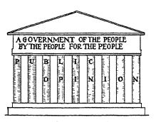 An illustration of the formation of public opinion. — On December 12, 1922, the people of the State of Illinois went to the voting places or polls and voted by a large majority to reject the new state constitution submitted to them. [ p. 441 ] For many years the old constitution had been regarded as unsatisfactory. The new one was the result of much planning and thinking on the part of a constitutional convention organized for the purpose. While the new constitution was being drafted, and especially after it was submitted to the people, a very earnest discussion of its provisions went on all over the state. In newspapers, in pamphlets, in club meetings, in tradeunion halls, in public meetings, arguments were made for and against the new constitution. Gradually public opinion unfavorable to the document was formed, and at the polls a public judgment was given.