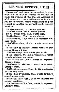 In addition to governmental agencies, there are private agencies. There are hundreds of “trade journals,” most of which print news of conditions in their trade. Many banks print and distribute bulletins about business conditions. Sometimes these give hints of business opportunities. Every large newspaper has, on its financial page, news and gossip of conditions in various businesses. Bond houses will give advice concerning investments. The trend of prices of stocks will sometimes show the skilled observer that certain lines of business are profitable and that others are not. There are engineering firms which, for a fee, will investigate and report concerning possible business ventures.