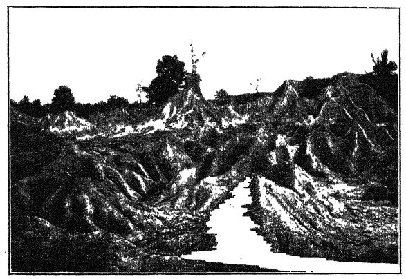 Civihzed man is, however, a spoiler. He tills or cultivates the ground. When he does this, he tears away the protecting carpet of grass from the field, and a single heavy rainstorm may carry away an inch of fertile soil from some hillside. This is more than would be carried away in five hundred years in the appropriative period of man’s food getting. So, also, civilized man raids the forests for lumber. [ p. 182 ] Even when we do our lumbering properly, we use up our forests faster than nature grows them. When we do our lumbering improperly, the rains no longer soak gently down into the earth. They tear out gulleys, wash away the fertile soil, msh rapidly down into rivers, and cause the floods that we so frequently read about in our newspapers.