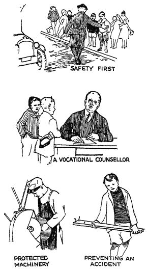 More effective employment. — There is almost no end to the list of agencies in our society that are trying to have persons more effectively employed. To mention only a few examples, our public schools and our business houses and our universities are working at the task of giving better training; our vocational-guidance work seeks to find better opportunities for us and to place us in tasks for which we are best fitted; our more progressive business houses select workers carefully and then train them and fit them into their jobs; our states pass minimum-wage laws, hoping thus to make sure that certain groups of our people get an [ p. 204 ] adequate living and do not become weakened nor poorlytrained. And these are only a few examples of our efforts.