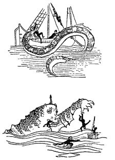 4. Added to these real dangers were the foolish fears and superstitions haunting men of those days. Science had not yet explained the world. Unknown lands, so men Imaginary iteRROEs thought, were peopled by goblins and monsters against which puny man could do nothing. Over the unknown seas, men said, hovered huge vultures that could lift a ship in their claws as easily as a hawk could lift a mouse — and the finish of the sailor would be worse than that of the mouse. Since they thought the world was flat, there was, of course a “jumping-off place” over which too venturesome ships would be dashed. There were huge rocks or cliffs which clashed together and smashed ships between them. There were serpents for which a ship would be but a light breakfast. There were — but why go on with the list? It is as long and as terrif 3 dng as the imagination of ignorant [ p. 281 ] man. A mind full of foolish fears and superstitions was an unfortunate mind for traders to have.