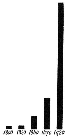 The recent enormous progress in trading. — It will be easier to show the great increase of trade during the last few generations by a chart than by words. Let us look at the chart (on the opposite page) showing the increase that has taken place in the trade among the different peoples of the world since 1800. What an astounding increase there has been! Now that we know that trade increases man’s abihty to live well, the chart becomes not merely a chart of trade but a sort of picture of man’s progress.