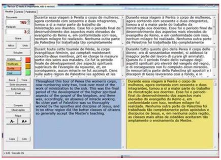 De esta base de datos bilingüe, solo se necesitó un paso sencillo para diseñar una herramienta que permitiera que todas las lenguas romances pudieran verse en la misma pantalla. ¡Era genial! Era el año 2006 y, aunque la Fundación Urantia todavía no había imprimido la traducción al portugués, un equipo había comenzado a trabajar en la revisión. Siempre que surgía una cuestión sobre la traducción, podíamos encontrar la solución comparando las traducciones al español, francés o italiano con el original inglés.
