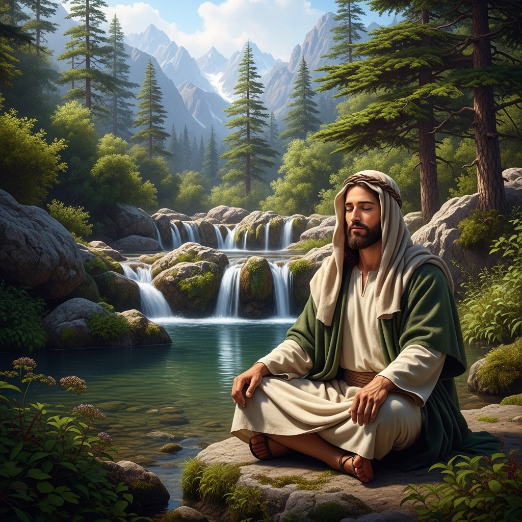 Jesús regresó al claro del megalito y se retiró a la zona de la cascada, junto al arroyo. Pasó prácticamente todo el día en oración callada, uniendo sus pensamientos al diálogo permanente con su Padre. En este estado de concentración y silencio consiguió por primera vez una abstracción completa y absoluta del mundo que le rodeaba. Al principio no quería entrar en ese estado, y pasó largo rato reflexionando sobre si era prudente que su comunión le llegara a abstraer tanto. Pero poco a poco comprendió que estaba alcanzando un control sobre sus percepciones de tal grado y magnitud que si continuaba por ese camino llegaría a dominar por completo su mente y a supeditar su cuerpo físico a este control de la mente.