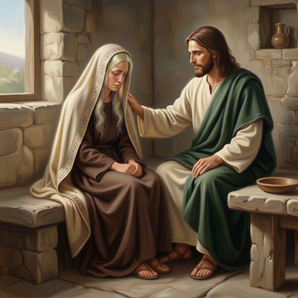 Jesús encontró a su madre muy abatida y distante, atendida por una servicial nuera que por más que se desvivía con ella no conseguía arrancar una sola sonrisa de los labios de María. La mujer se sentía sola y abandonada, viuda, con los hijos lejos de ella, y sobre todo con el gran sueño de ver a su hijo mayor convertido en el Mesías prometido hecho añicos.
