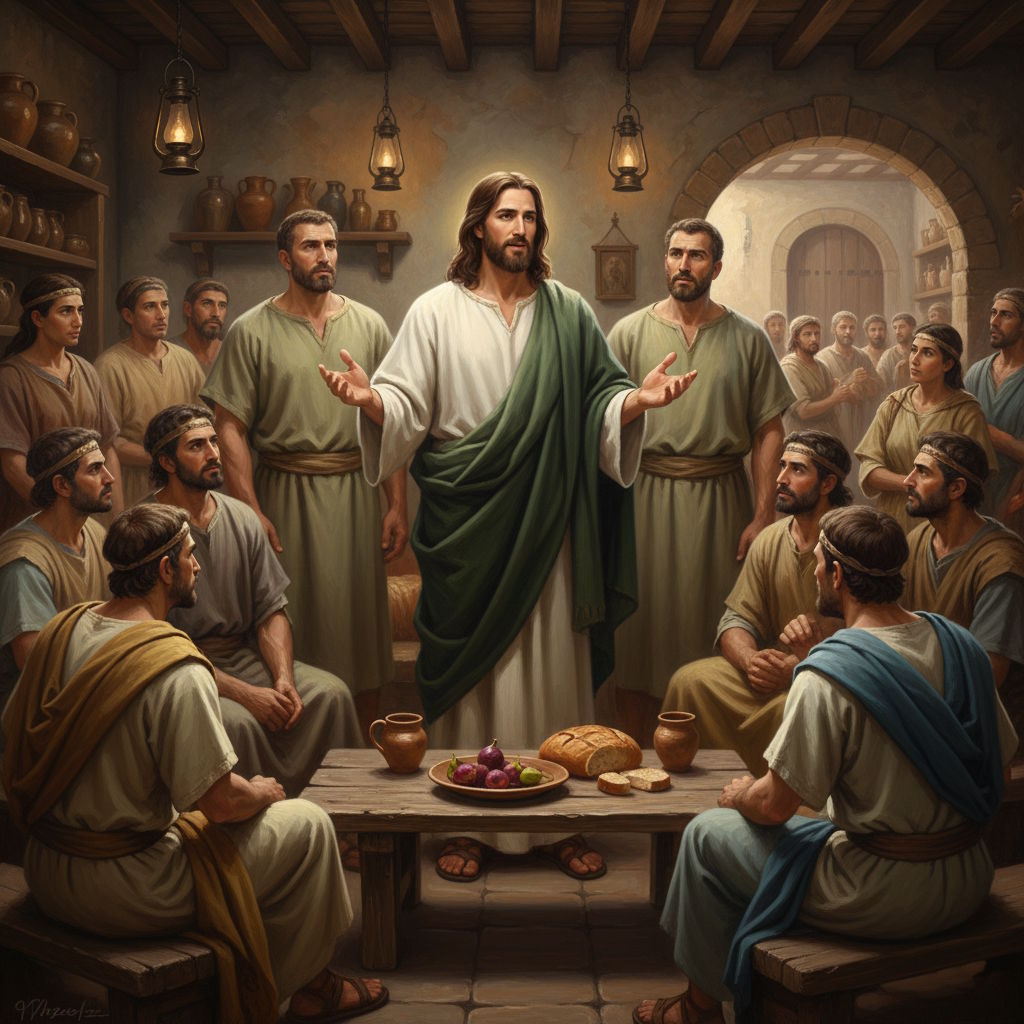 En el curso de una de sus habituales rondas de preguntas y respuestas con los Alfeo y con otros curiosos, mantenidas todas las tardes en la posada donde se alojaban, Jesús ofreció una de las respuestas más emotivas que jamás escucharían los gemelos. A la pregunta de un hombre de la ciudad sobre el motivo del sufrimiento y la injusticia en el mundo, Jesús trajo esta reflexión a la consideración de todos: