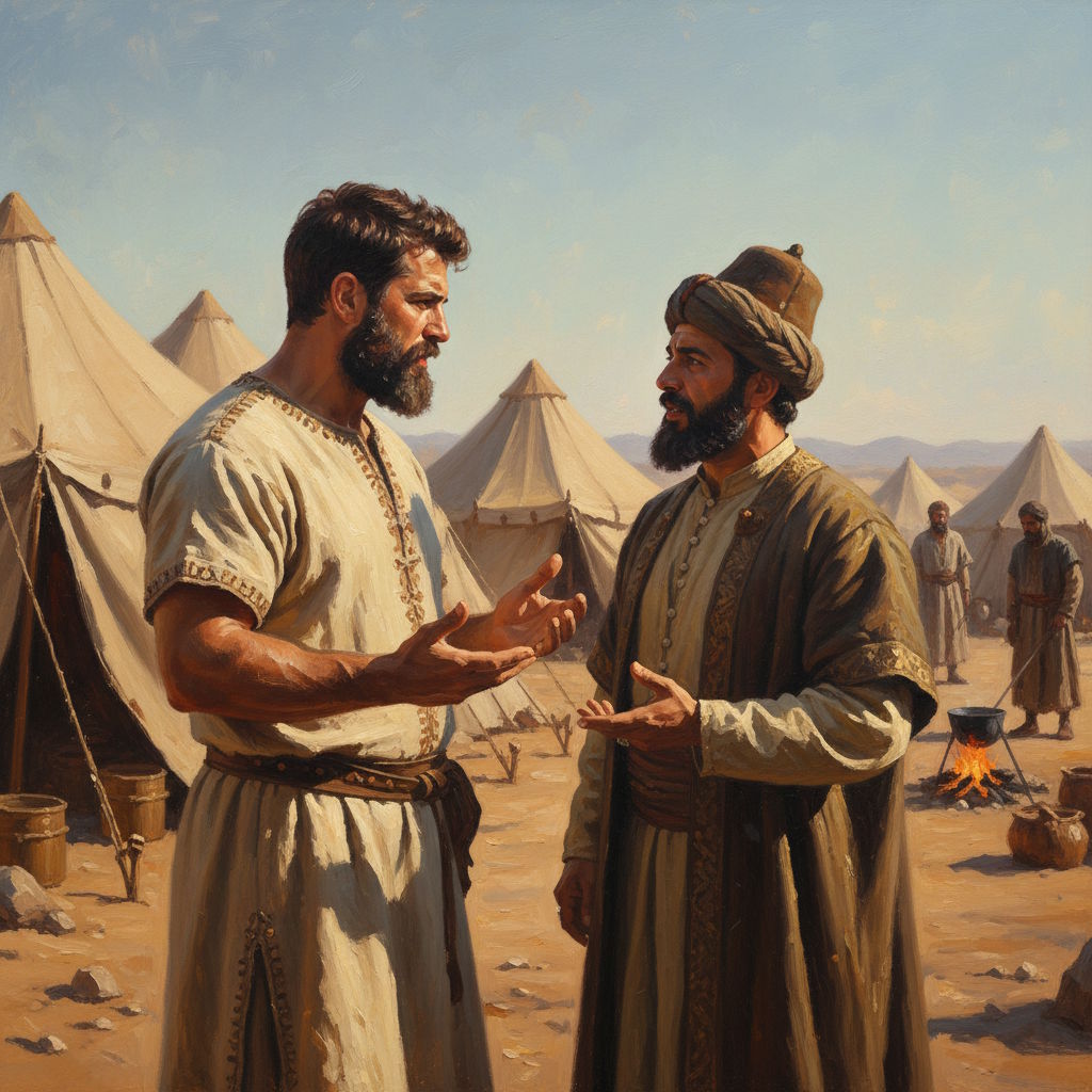 Tanto se enzarzaron estos dos hombres en su debate, que pasaron prácticamente todo día en recogida conversación. Incluso durante la cena, en la que Jesús no estuvo presente, ambos tertulianos no dejaron de discrepar entre sí sobre lo humano y lo divino. El resto de los doce, que solían cenar a solas en su espaciosa tienda, admitieron hospitalariamente a este hombre y escucharon interesados sus largas disertaciones.
