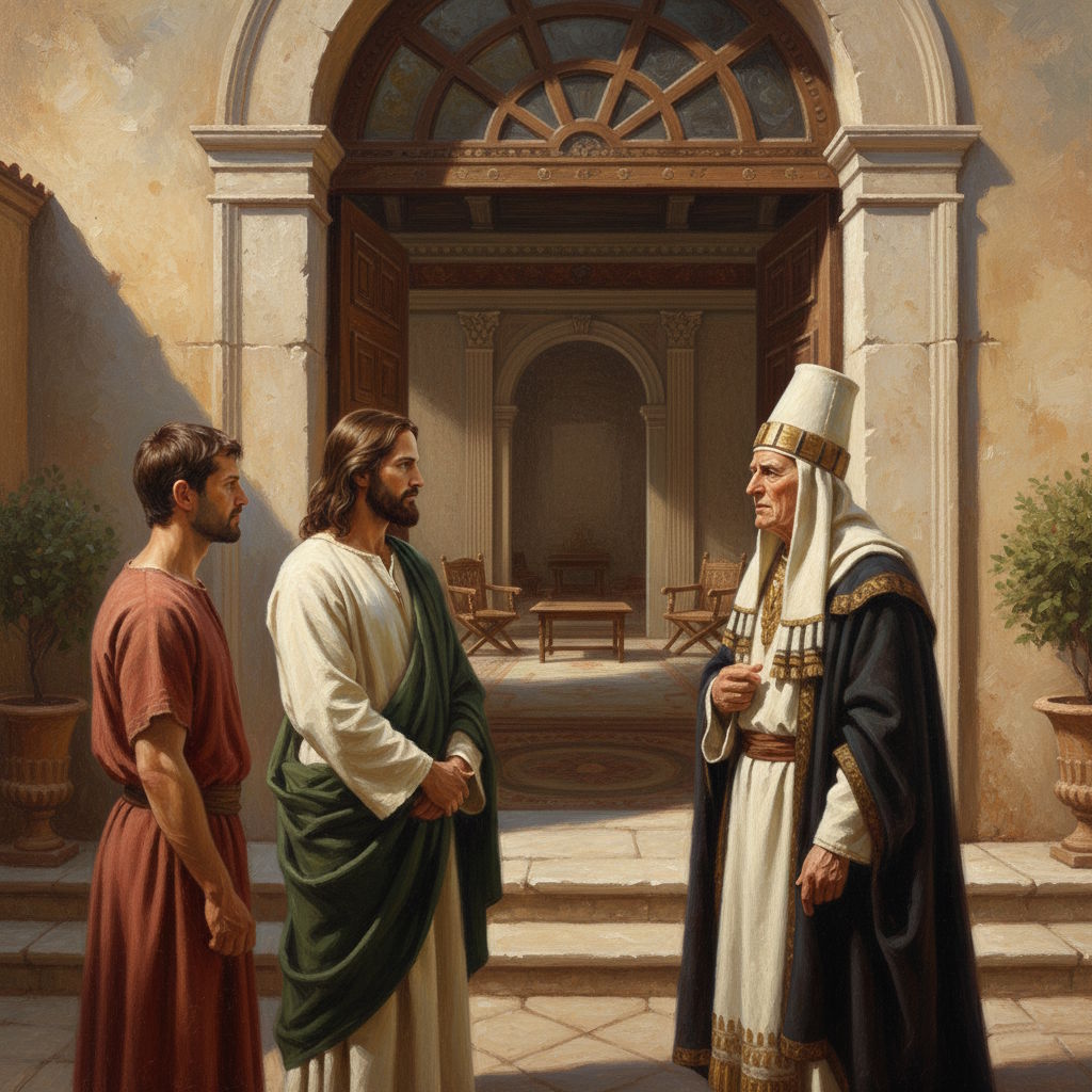 Pero el Maestro no se inmutó con aquel frío recibimiento. Sabía que podía ocurrir. ¡Qué difícil era confiar en estos hombres respetables pero tan orgullosos de sí mismos! Sostuvo la mirada del sumo sacerdote durante unos segundos, sin dejarse intimidar. Juan fue quien trató de borrar el mal comienzo, diciendo algo de forma atropellada acerca de la bondad de las enseñanzas de Jesús.