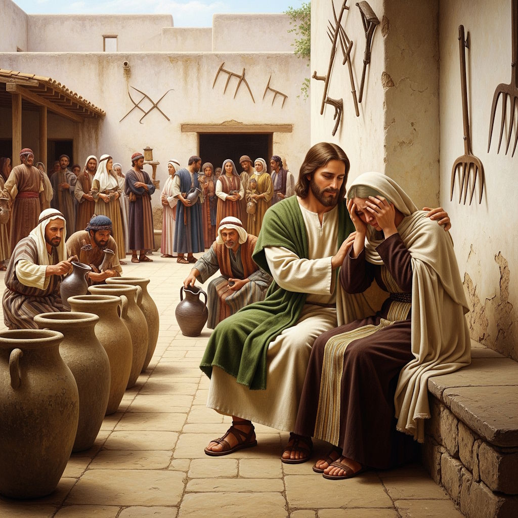 Pero el Maestro se convirtió en la verdadera atracción de esa mañana. Todos los invitados habían oído de los rumores sobre los sucesos del Jordán, y nadie quería perderse la ocasión de conocer al tan renombrado carpintero. Jóvenes, ancianos y niños se disputaban el saludo de Jesús y sus palabras de bienvenida.