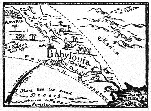 Para rastrear el avance de la religión, debemos trasladarnos a una tierra muy alejada de los bosques primigenios de los celtas. Debemos ir a la antigua Mesopotamia, esa verde región entre los grandes ríos del Cercano Oriente, donde ya había amanecido cuando la noche aún reinaba en Occidente. La religión de Babilonia, aunque mucho más antigua que la de los celtas, era en casi todos los aspectos mucho más avanzada. Desde mucho antes del comienzo de la historia escrita, la religión parece haber sido más avanzada en Oriente que en Occidente. Por razones que no podemos comprender, los orientales, especialmente los semitas, parecen haber tenido un talento peculiar para la religión. Eran beduinos, esos semitas: una raza flaca, hambrienta y agobiada que vagaba eternamente por las vastedades desérticas de Arabia en busca de otro lugar y otro momento para morir. Y fueron ellos, muy probablemente, quienes sentaron las bases de la religión de Babilonia. Hace miles de años, cuando algunos de ellos lograron salir con dificultad del árido desierto y afianzarse en las exuberantes praderas de Mesopotamia, trajeron consigo su antigua religión del desierto. Era entonces poco más que un animismo rudimentario, [ p. 67 ] con Ishtar, «Auto-regadera», el espíritu del oasis, como deidad principal. Ishtar, que era una diosa, probablemente tuvo como esposos a los espíritus del viento, el sol y la luna; y ciertamente tuvo como amante a Tamuz, el espíritu de la palmera datilera. No podemos estar seguros, pero parece bastante probable que la mayoría de las demás deidades importantes de la época también fueran diosas. Esto debió deberse a que los semitas primitivos aún se encontraban en la etapa matriarcal de la pre-civilización. Allí donde los jefes de sus familias y clanes eran las madres, no los padres, naturalmente se imaginaba que los espíritus principales eran diosas, no dioses.