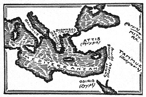 Ya hemos tratado extensamente en este volumen los misterios de Grecia y Roma. En su origen, eran mayormente orientales, y en esencia surgieron de la creencia de que mediante ciertos ritos mágicos un hombre podía asumir la naturaleza de un dios inmortal. En la mayoría de los casos, dicho dios era representado como un joven héroe que había sido asesinado a traición y luego resucitado milagrosamente. Esa misma leyenda se contaba —con variaciones, por supuesto— sobre Dioniso, Osiris, Orfeo, Atis, Adonis y quién sabe cuántos otros dioses similares. Surgida del deseo común de explicar la muerte y el renacimiento anuales de la vegetación, esta leyenda era común en muchas partes del mundo y se creyó en ella durante innumerables siglos. Se convirtió en la base de una docena de religiones diferentes, proporcionándoles a todas el dogma fundamental de que mediante sacrificios, hechizos, oraciones, trances u otros recursos similares, el hombre mortal podía volverse inmortal. Hacia el primer siglo de esta era, la leyenda se había extendido a todas las provincias civilizadas del Imperio Romano —excepto, por supuesto, la pequeña provincia de Judea, que se resistía obstinadamente— y en todas partes había emborrachado a la gente con el embriagador licor de su misteriosa salvación.