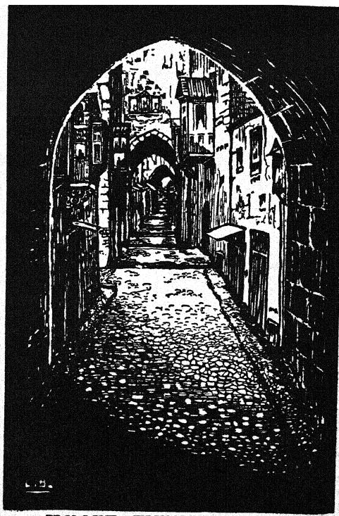 Desde lejos, sobre las colinas —parecería de otro mundo— se oye el tintineo de los cencerros de los camellos. Débilmente se oye el sonido, muy débilmente: un goteo frío y vacilante de música que cae en la noche… Salvo por eso, hay silencio, un silencio inmenso que llena cada callejón de la antigua ciudad, que se hunde en cada agujero y grieta, que se eleva por encima de la muralla de la ciudad. Porque Jerusalén duerme… La noche casi ha terminado, y en el este el azul del cielo se ha tornado a ese vívido verde grisáceo que presagia el amanecer. Pero Jerusalén aún duerme… y hay silencio… salvo por ese goteo sordo de música de los cencerros de los camellos en la distancia…