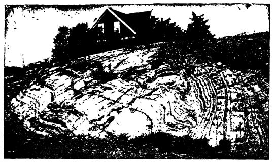 Granites d’Algoman. — Presque toutes les formations sudburiennes sont intrudées, déformées et métamorphisées par des granites nommés Algoman par Lawson. Ils ressemblent tellement aux granites laurentiens qu’il est souvent très difficile de distinguer les deux ensembles d’intrusions profondes. En fait, les plus récents n’ont été identifiés que dans quelques localités et tous étaient autrefois appelés laurentiens. Les deux types d’intrusions ont formé des montagnes bathylithiques.