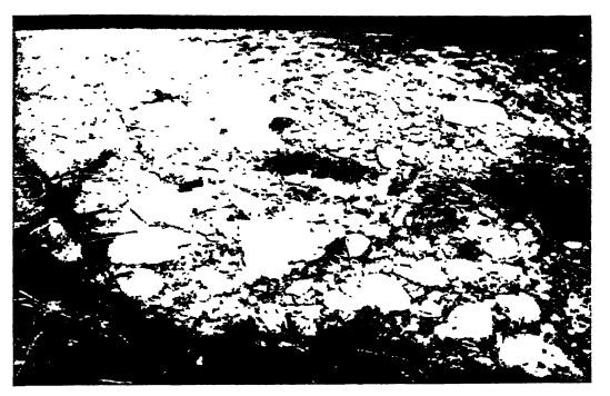 Des conglomérats de granite et de pierre verte d’un diamètre allant jusqu’à 60 à 90 cm sont courants, et on rencontre parfois des conglomérats plus grands, mesurant jusqu’à 1,50 m. Ces conglomérats peuvent être bien grumeleux, subanguleux ou anguleux. Ils peuvent être compactés en une masse de pierres de différentes tailles cimentées ensemble, ou bien dispersés dans une matrice à grain fin, les granites rouges se détachant nettement sur des mètres carrés de sol gris verdâtre terne. Généralement, aucune stratification marquée n’est visible dans les conglomérats les plus grossiers, bien que les conglomérats à galets et les ardoises associés puissent être bien stratifiés. La matrice et les conglomérats qu’ils contiennent varient considérablement d’un endroit à l’autre, correspondant plus ou moins à la nature des roches sous-jacentes ; la roche évoque fortement une moraine glaciaire dans certains cas et une argile à conglomérats dans d’autres. (Coleman.)