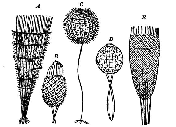 Parmi les fossiles du Cambrien inférieur les plus intéressants figurent les moulages de méduses, dont la composition originelle est constituée à 95 % d’eau, voire plus. L’illustration (Fig. 19, p. 155) d’une Aurelia vivante montre à quoi ressemblaient ces méduses cambriennes. On les trouve fréquemment à l’état fossile dans le Vermont et l’Alabama.
