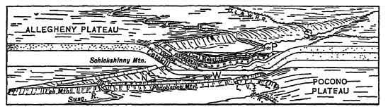 Les montagnes émergentes d’Amérique du Nord. — De même que de hautes montagnes se sont formées en Europe occidentale peu après la fin du Carbonifère inférieur (Culm ou Dinantien), des montagnes similaires ont vu le jour en Amérique à la fin du Mississippien. Le chapitre consacré à cette dernière période décrit l’émergence de montagnes en Alabama, en Arkansas et en Oklahoma, ainsi que dans l’est du Canada. Nous allons maintenant retracer la reprise de ces émergences au Pennsylvanien.