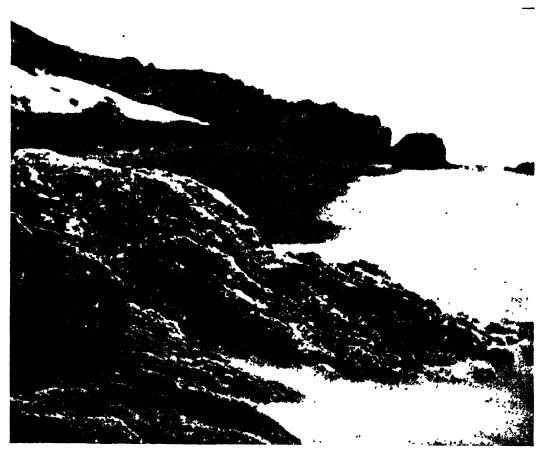 Mineraines de fer. — Dans les régions riches en charbon, on observe rarement des roches rouges ou jaunes. La couleur est généralement grise à vert clair, voire blanchâtre pour les grès, tandis que les schistes, bien que parfois verdâtres à noirs au-dessus des couches de charbon, sont généralement des argiles plus ou moins blanches en dessous. Cette absence de couleurs rouge et jaune intenses, dues à l’oxyde ferrique (hématite et limonite), s’explique par le fait qu’en présence de matière organique, soit dans les charbons lors de leur dépôt, soit dans les solutions qui s’en écoulent, le fer ferrique est réduit en fer ferreux, puis se combine au dioxyde de carbone pour former du carbonate ferreux. Ce dernier n’est pas un colorant et, par cette transformation, dont l’aspect chimique a été abordé précédemment (Partie I, page 172), les strates sont décolorées, sauf lorsqu’elles présentent une couleur grise à noire due à la présence de matières carbonées. Comme indiqué aux [ p. 372 ] pages 172 et 181 de la Partie I… Le carbonate ferreux ainsi formé, étant, comme le carbonate de chaux, soluble dans l’eau contenant du dioxyde de carbone, peut être dissous, lessivé et concentré ailleurs. En passant dans des eaux stagnantes peu profondes, le dioxyde de carbone peut s’échapper, le fer peut être réoxydé par les bactéries ferreuses et précipiter sous forme d’oxyde ferrique hydraté (limonite), formant ce que l’on appelle le minerai de fer de Hokage. Mais en présence de matière organique abondante, comme dans les marais et marécages du Carbonifère, cette réoxydation était empêchée et le fer se concentrait et se déposait sous forme de carbonate ferreux. Parfois, le minerai de fer était mélangé à plus ou moins d’argile provenant d’eaux boueuses, et cette variété est connue sous le nom de minerai de fer de jour ; dans d’autres cas, il était plus ou moins mêlé à de la tourbe noire, dans les marais à végétation luxuriante, et c’est ce qui forme le précieux minerai de fer à bandes noires, que l’on trouve dans l’Ohio et en Pennsylvanie.