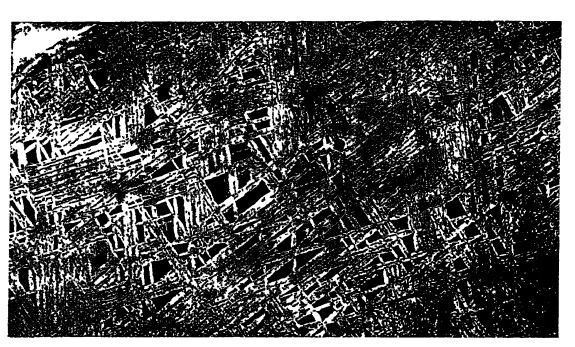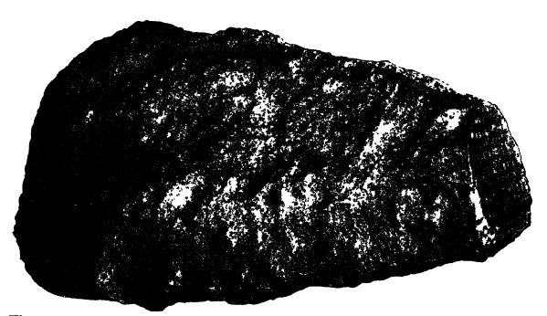Il existe une grande variété de météorites, que Merrill classe comme suit : (1) les météorites pierreuses (basaltiques et chondritiques) ou aérolites, composées essentiellement de minéraux silicatés avec de faibles quantités d’alliages métalliques et de sulfures (Fig. ci-dessous) ; (2) les météorites mixtes pierre-fer ou sidérolites, composées de métaux et de minéraux silicatés ; et (3) les grandes météorites de fer ou sidérites, essentiellement un alliage de nickel, de fer et de cobalt, avec des phosphures et des sulfures de fer (Fig., pp. 116, 118). « Il est évident que les météorites se sont formées dans des conditions de faible teneur en oxygène et que, depuis leur formation, elles ont été soumises à des températures élevées et au pouvoir réducteur des gaz » (Merrill).